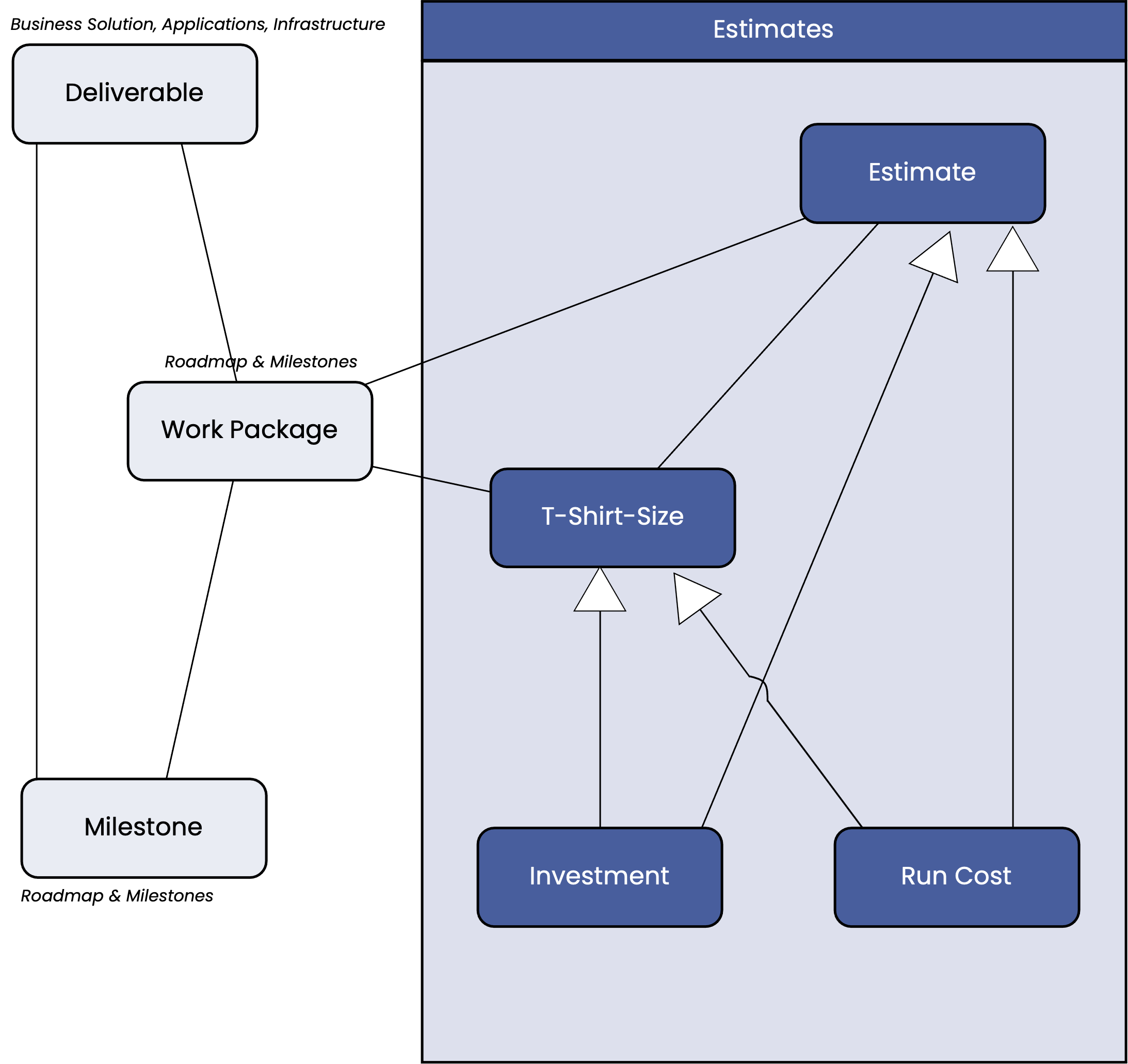 Cost estimates are typically assigned to work packages. Work packages, in turn, refer to a deliverable planned for a specific milestone.