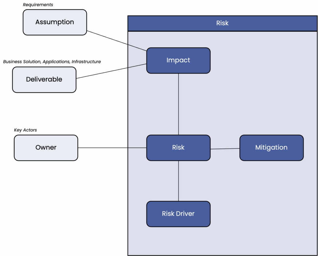 From the very beginning, we repeatedly run through scenarios that could cause the project to fail and identify all possible risks. In particular, we analyze the impact of a risk on assumptions underlying the business case (e.g., the target customer group is smaller than expected) or on deliverables (e.g., a feature cannot be implemented at the planned cost).